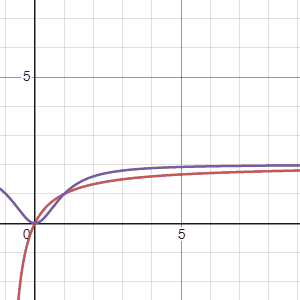Using the two models Marc suggested, \(G_1(\tau)\), the first equation, is in red and the second equation, \(G_2(\tau)\) is in purple, we can see how these models change when the parameters “\(a\)” (first gif) and “\(b\)” (second gif) are adjusted. The first thing to notice is that both models arrive at an asymtote but the second model has a concave shape before arriving to an asymtote while the first model maintains a convex shape for all positive numbers. Another thing to notice is that the second model reaches asymptote at a faster rate.